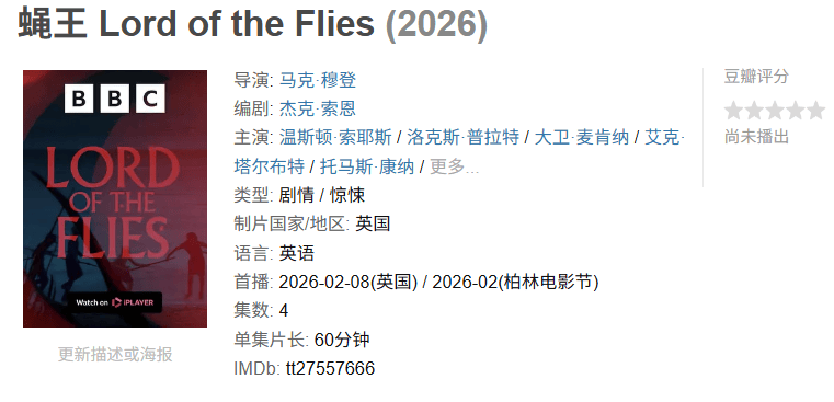 又有名著改编的大剧了。而BBC的制作也可以保证本剧的品质,毕竟是剧集,让剧版拥有更充裕的篇幅去铺陈孩子们心理异化、从文明走向野蛮的残酷全过程。