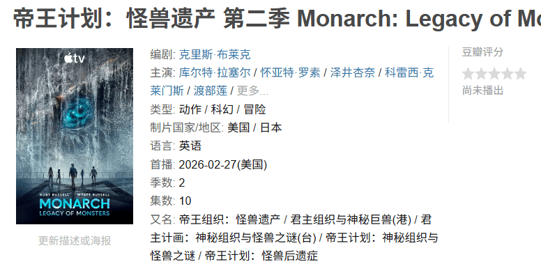 第一季其实评分很一般了,但这个设定还是太有热度,应该还是会有朋友想继续追的。据说第二季预算更高,将展示更多奇形怪状的泰坦巨兽及其毁天灭地的搏杀。